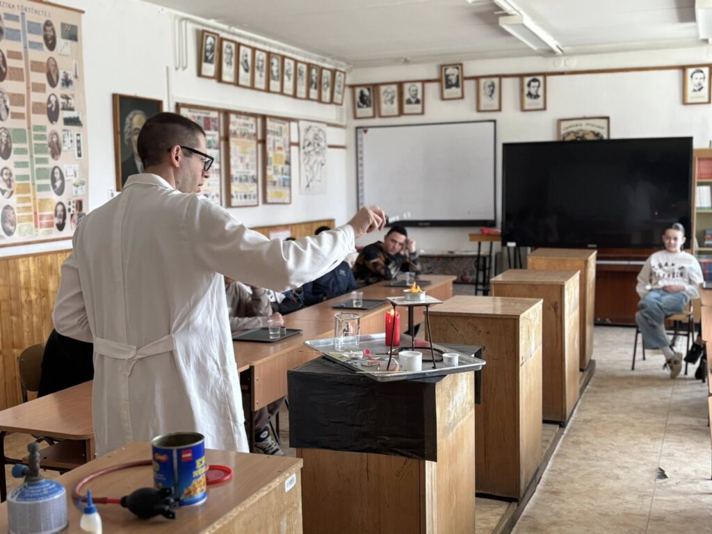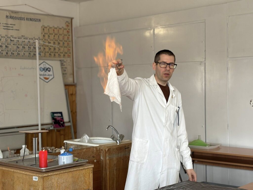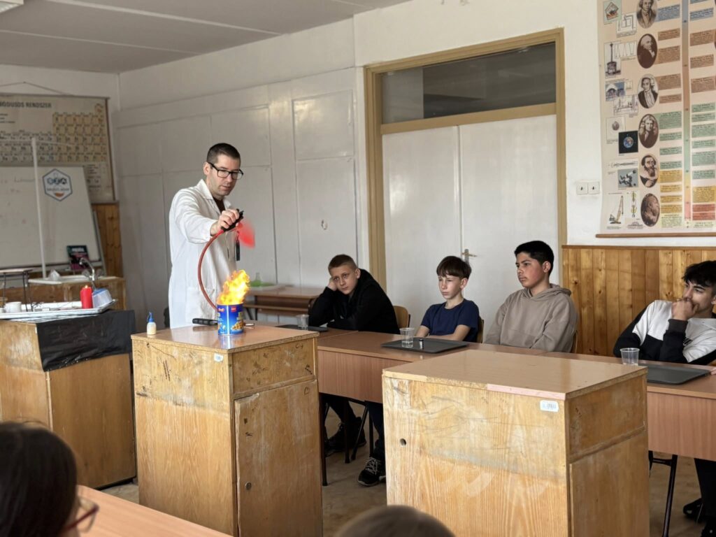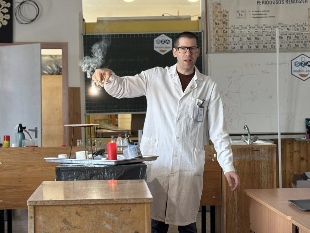Iskolánkba látogatott a Szabó Szabolcs Alapítvány mobil kémialaborja, ahol tanulóink izgalmas és látványos kísérleteken keresztül ismerkedhettek meg a kémia érdekes világával. A bemutató nagy sikert aratott, a diákok kíváncsian és lelkesedéssel figyelték a különleges kísérleteket.