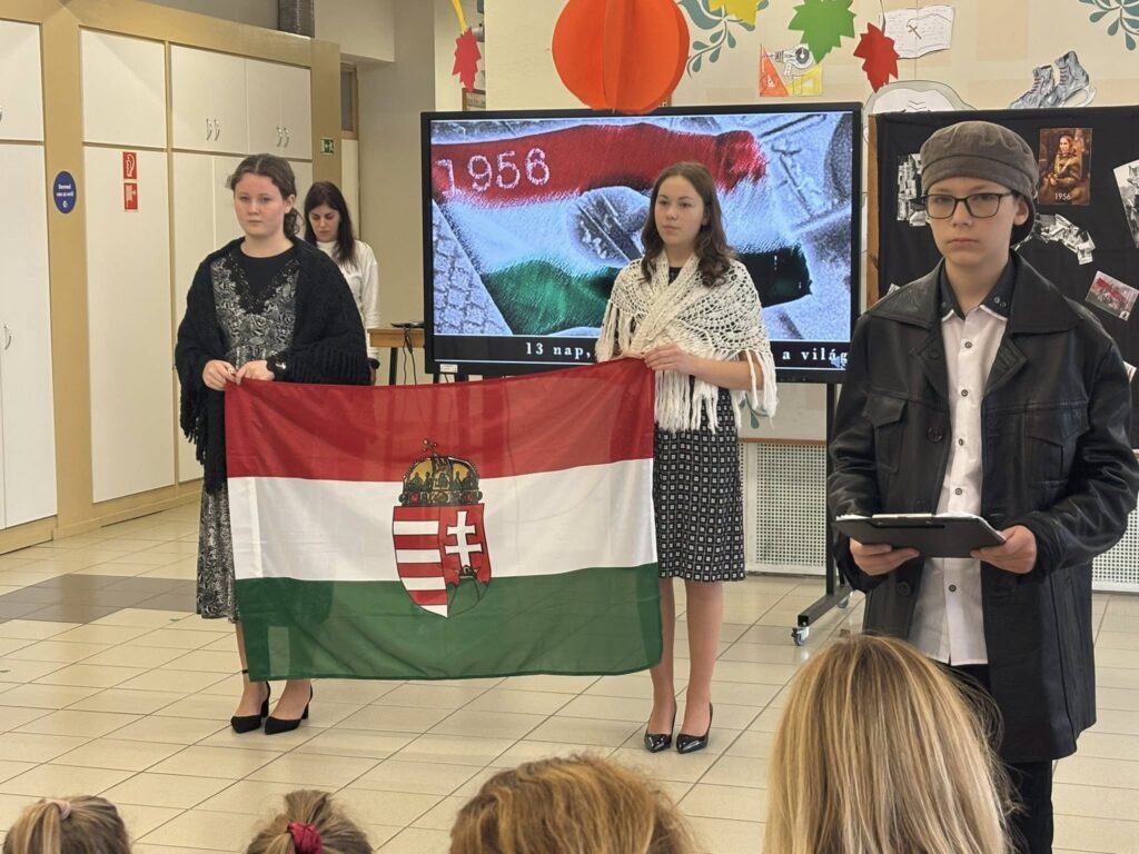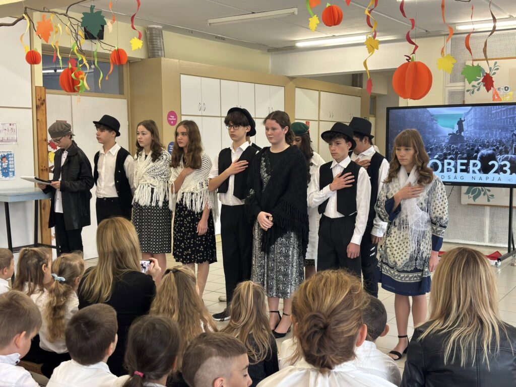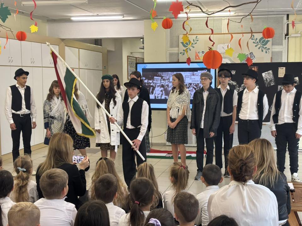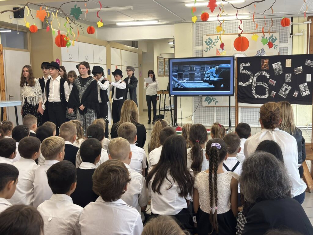 Ma iskolánk 8. osztályos tanulói megható és méltó műsorral emlékeztek meg az 1956-os forradalom és szabadságharc hőseiről.